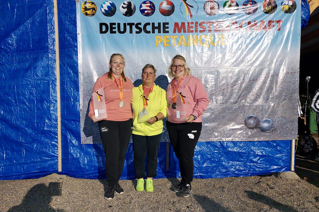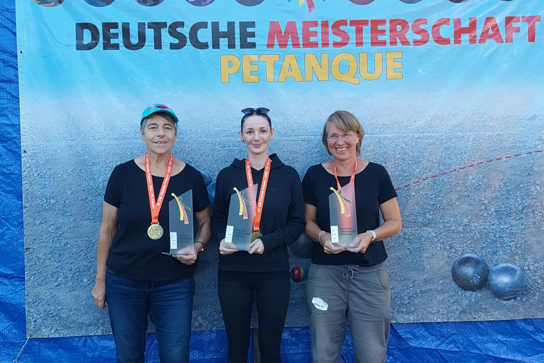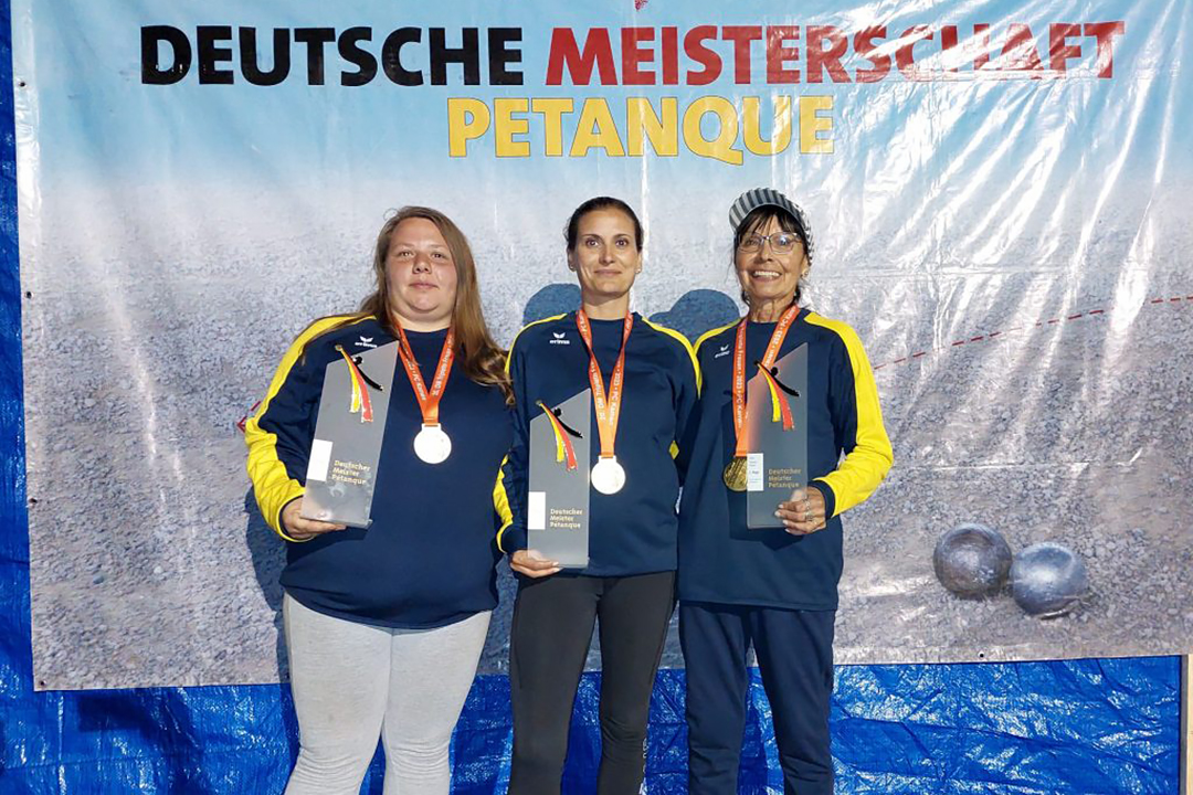 Bereits am Samstagmorgen ging es nach der Begrüßung durch den Deutschen Petanque Verband Vizepräsidenten Hugo Port, die NRW Petanque-Präsidentin Sandra Pahl, Kamens Bürgermeisterin Elke Kappen und den Vorsitzenden des PC Kamen, Tobias Ungermann, mit der Vorrunde los, nachdem sich ein Großteil der Teams bereits am Freitagabend eingeschrieben hatte. Und nach 2 ausgesprochen interessanten Vorrundenspielen und einem Entscheidungsspiel um die weitere Teilnahme in der Meisterschaftsrunde, die allesamt am Samstag stattfanden, ging es am frühen Sonntagmorgen für 32 Teams und die qualifizierten Tireurinnen in einer dann folgenden K.O.-Runde weiter. Nach zahlreichen zum Teil ausgesprochen spannenden Spielen standen erst am Sonntagabend bei Einbruch der Dunkelheit die Siegerinnen fest. Die neuen Deutschen Meisterinnen im Triplette sind Anita-Dolores Barthelemy, Ildiko Szabo und Sabrina Detant aus Baden-Württemberg. Im Endspiel schlugen sie Lea Mitschker, Jennifer Schüler und Birgit Schüler aus Nordrhein-Westfalen mit 13:9, die damit den Titel der Vize-Meisterinnen errangen. Bei den Tireurinnen war es ebenfalls spannend. Hier siegte Carolin Birkmeyer, die ihre Konkurrentin Anna Lazaridis, beide aus Nordrhein-Westfalen, in einem spannenden Endspiel besiegte, und damit den begehrten Titel errang. Ein großes Dankeschön sprachen die Verantwortlichen an den ausrichtenden 1. Petanque-Club Kamen aus, dessen Mitglieder sich 3 Tage lang in vorbildlicher Weise um das Wohl der Teilnehmerinnen und zahlreichen Gäste gekümmert hatten.