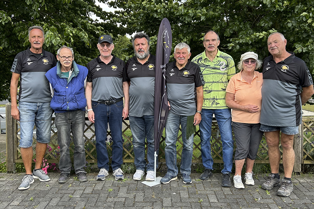 Das Foto zeigt die Sieger und Halbfinalteilnehmer von links: Bernd Hänsel, Gisbert Bauer, Hans-Peter Ney, Peter Schauseil, Hartmut Roßdeutscher, Dirk Bodewein, Ursel Kellmann und Peter Schmidt.