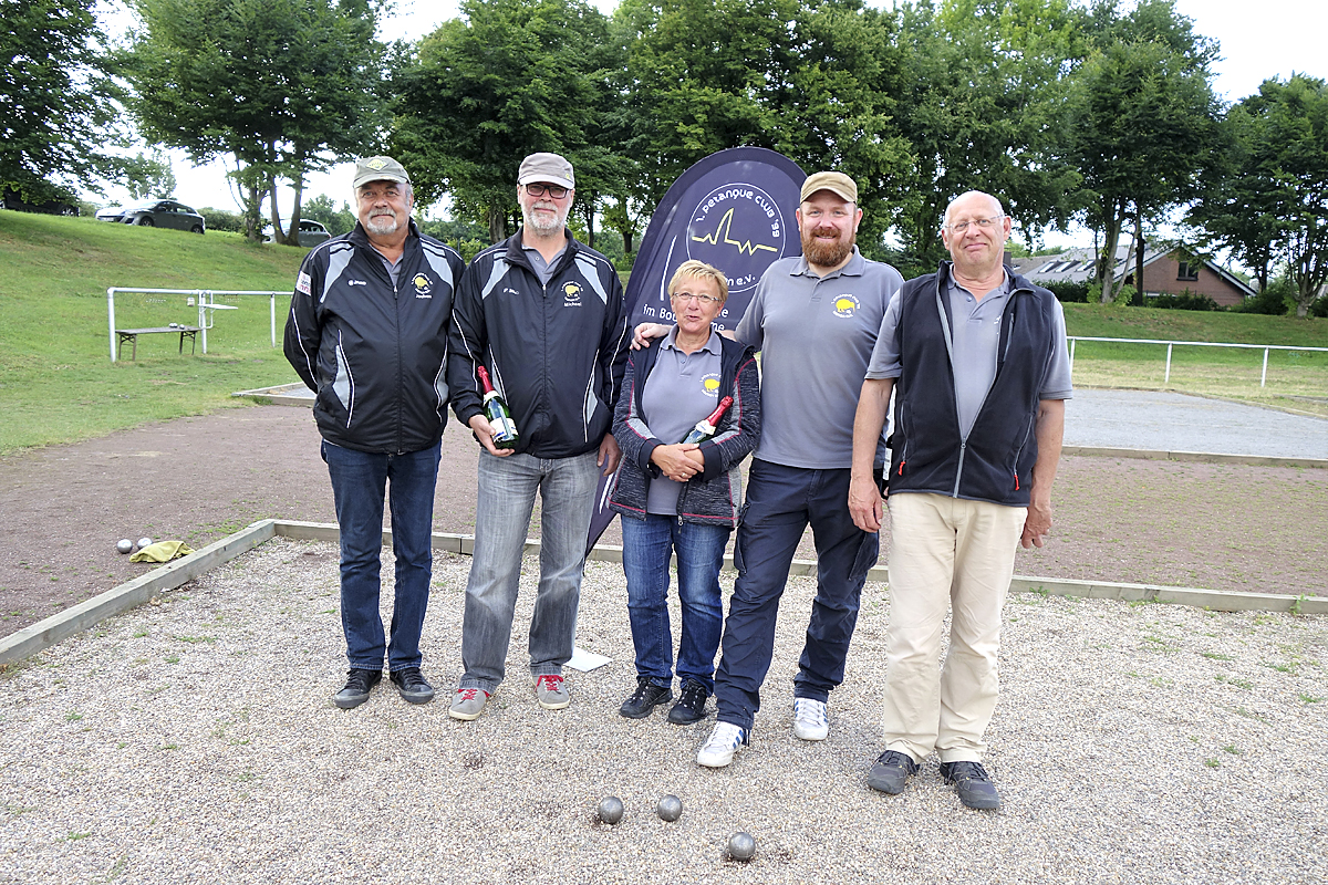 Tobias Ungermann und Josef Goßling sind die neuen Vereinsmeister im Doublette des 1. Pétanque Clubs 99 Kamen. Im Finale besiegten sie Ursula Hänsel und Michael Kulinna mit 13 : 8 und konnten im Anschluss aus den Händen des 2. Vorsitzenden Jochen Eckmann den Siegerpokal entgegennehmen.