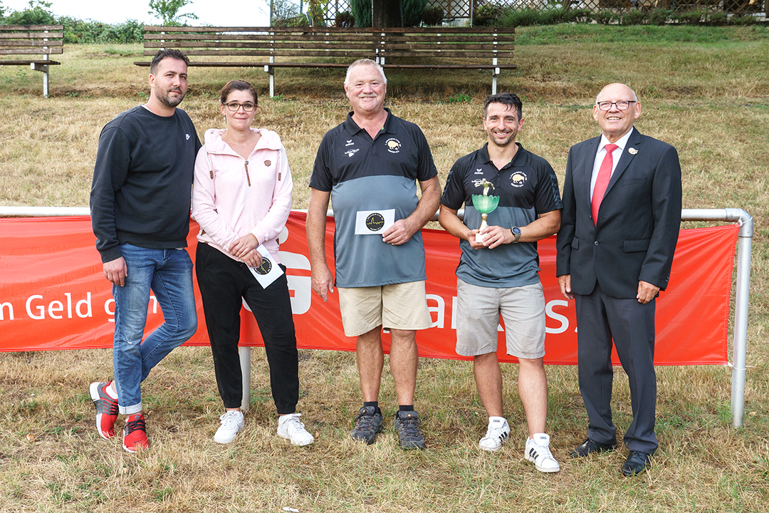 Das Foto zeigt die Siegerehrung, von links: Patric Lichte, Yvonne Lichte, Peter Schmidt, Toni Roßdeutscher und Stellvertretender Bürgermeister Manfred Wiedemann