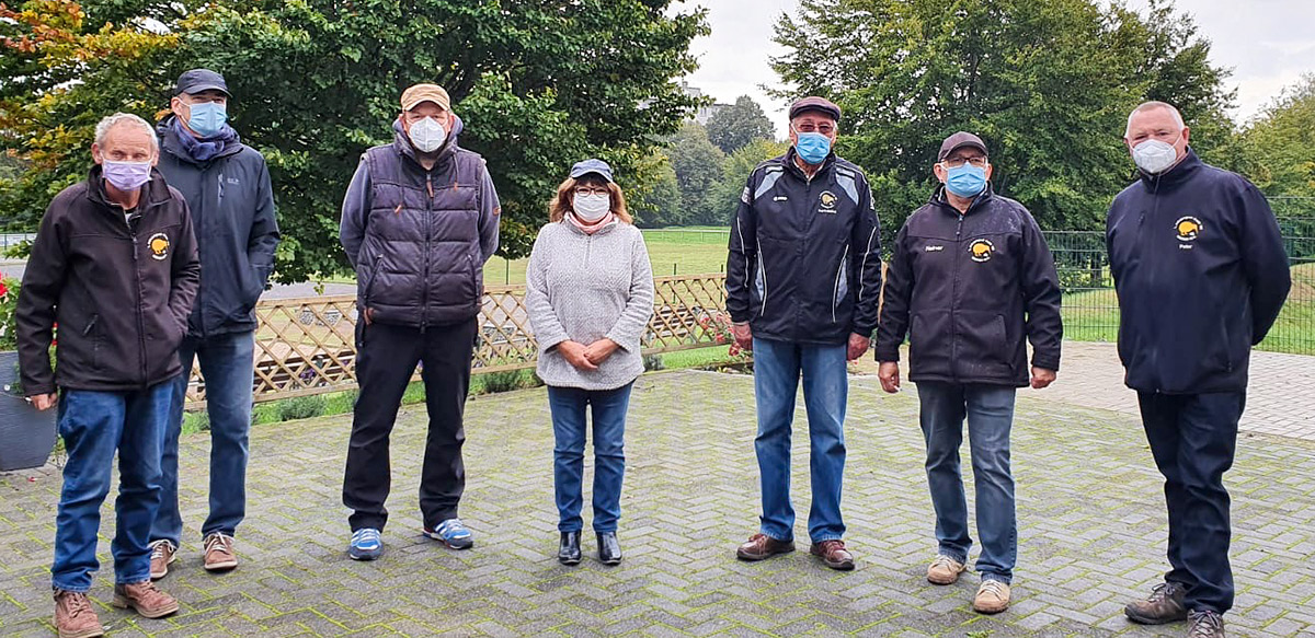 Das Foto zeigt von links: Reinhard Hasler, Bernd Hänsel, Dietmar Deifuß, Peter Schmidt, Karl-Heinz Wölm, 2. Vorsitzende Birgit Schmidt, Hartmut Roßdeutscher, Friedel Bielendorfer und den 1. Sportwart Peter Schauseil