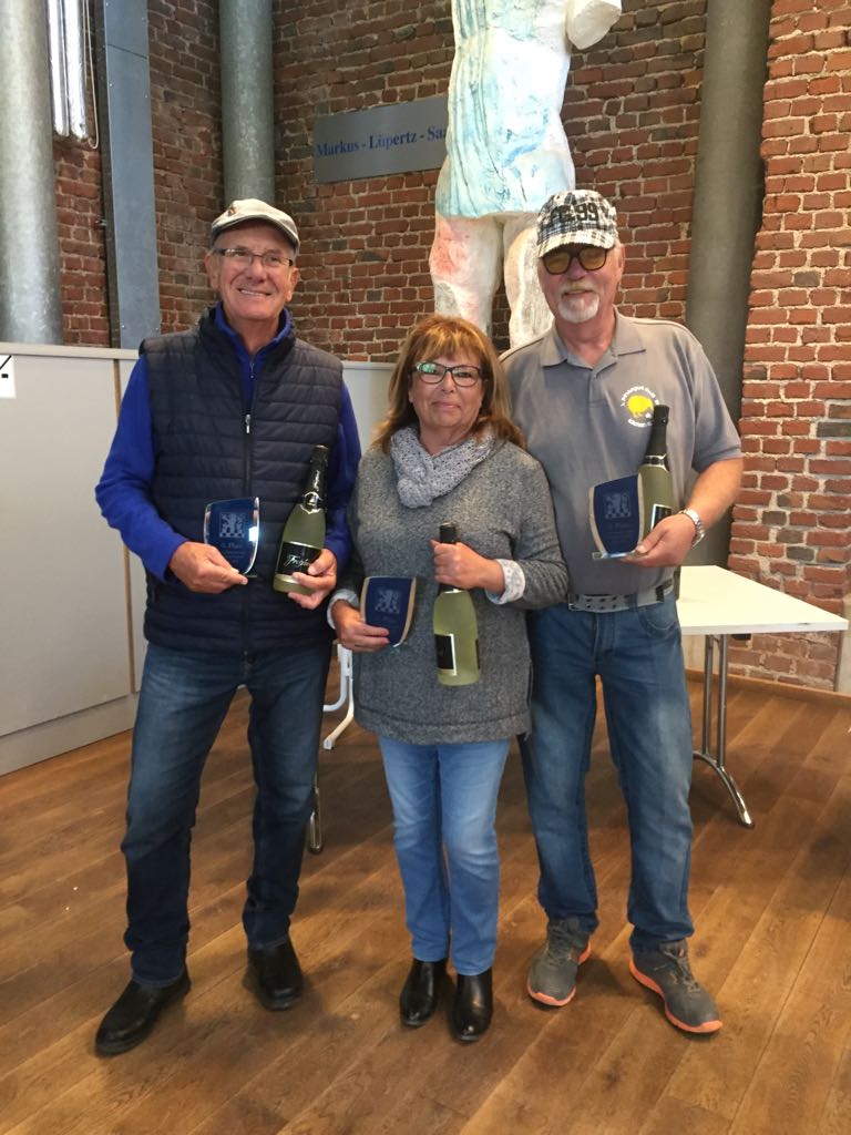 Das Foto zeigt die Finalteilnehmer nach der Siegerehrung durch den 2. Vorsitzenden Jochen Eckmann von links: Manfred Rutke, Dieter Lukat, Klaus Thomas und Franz Sieger.